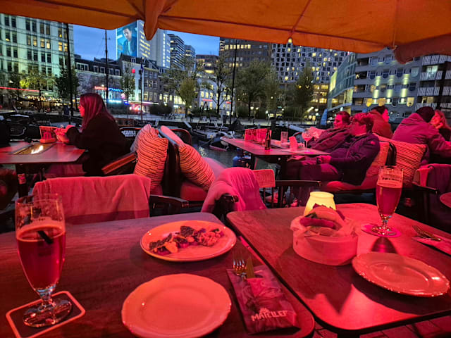 8/10Great food, (have bitterballen here if you’ve never had it before), the most tasty tomato salad - everything we ordered was good. Service was incredibly fast and the staff very friendly - given that every table was occupied! Location was stunning and the fires/heaters added to the coziness. Definitely will go back on my next visit to Rotterdam.