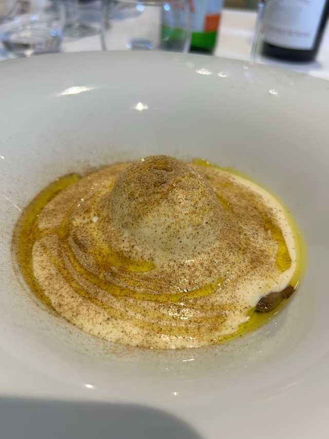 - Pasta all'uovo 48 tuorli ripiena di genovese di vitello, fonduta di canestrato e jus