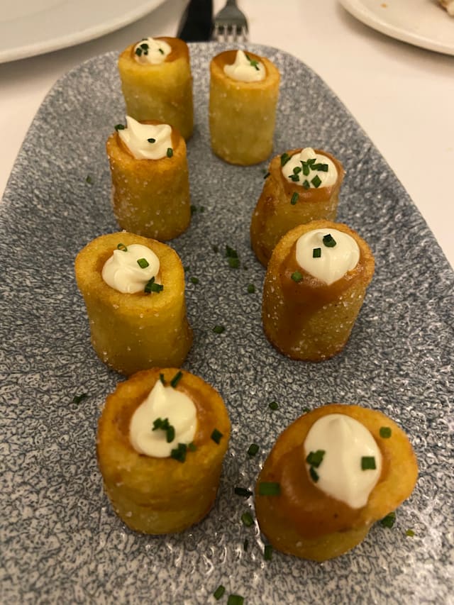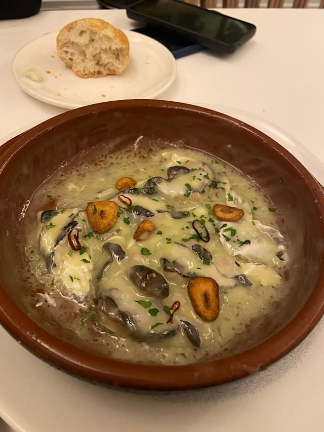 8/10Great food. Zamburiñas delicious. Got a steak tartare that we could sample before they served it, nice touch. Could dress plates up a bit more but as the name says, it´s about the materia prima.