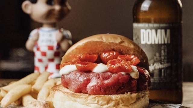 Burger di Rossa Reggiana, Bacon croccante, cheddar, salsa BBQ
