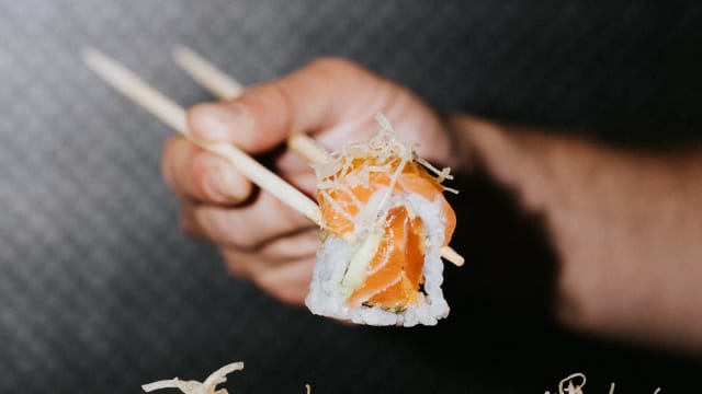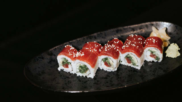Sushi ebi, goma wakame, aguacate, mayo yuzu y atún