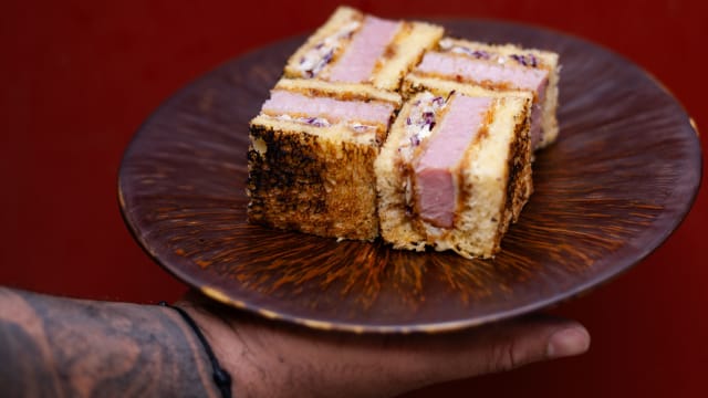 Chuleta ahumada empanizado, salsa tonkatsu, kewpie mayo y mix de coles