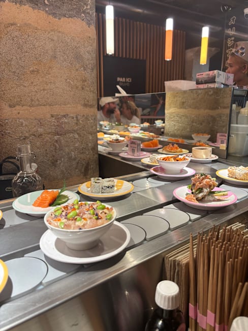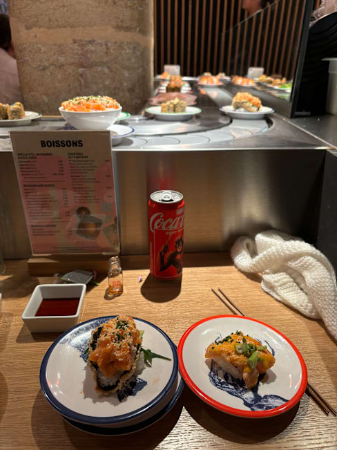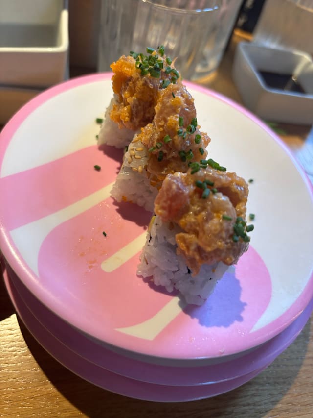 7.5/10On a kaiten I love the display of what is available to pick if I need to order anyway and check the menu what is the difference of other restaurants. At least put pictures on the kaiten to make ordering easier. The fish was delicious and some of the food creations were creative and fun
