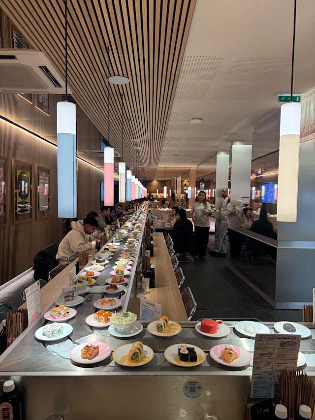 5.5/10The food was tasty, but some of it was circling the sushi conveyor the entire time we were there