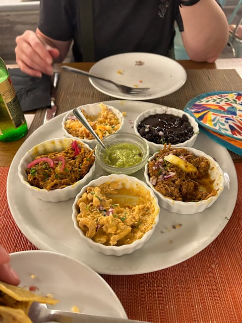 10/10We eat all over Mexico and this was wonderful. Delicious food, margaritas, service, and owners. We had the Matt and Marshall plate made vegetarian 2 nights in a row; our friends had the regular version and we all loved it 2x. The hot sauces brought to the table added the extra kick I love.