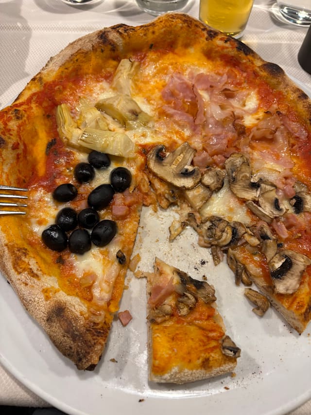 10/10The presentation and quality of the 4 Seasons pizza - now I understand the meaning of autumn winter spring summer - the circle of the year in four quarters! Mushrooms, meat, artichoke and black olives. Matto Matto the Magnificent!