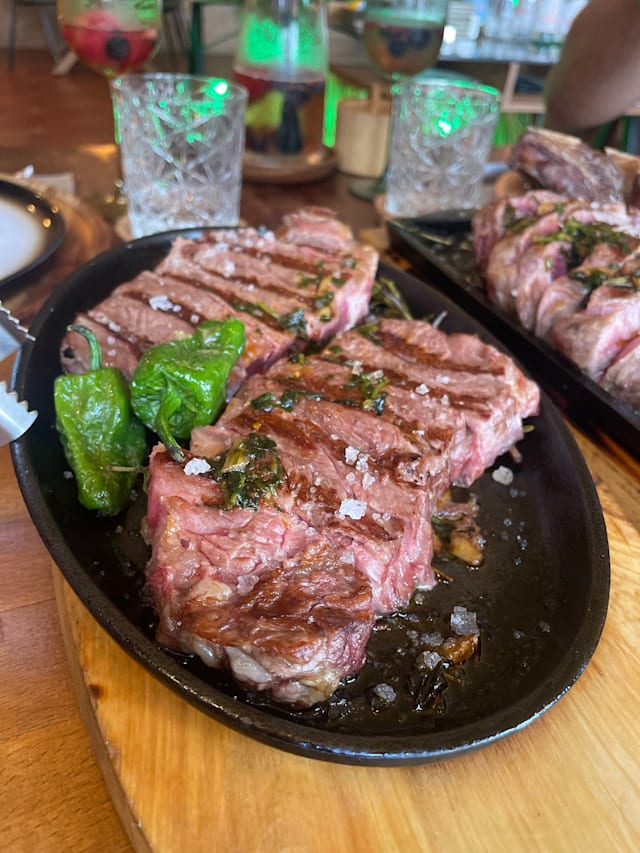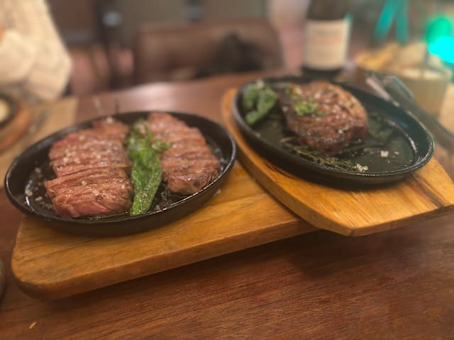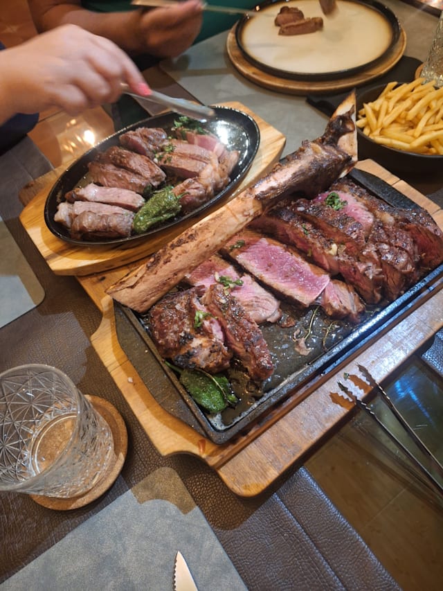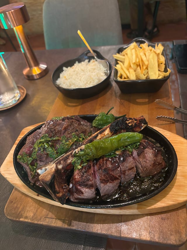 9/10We had a great evening at Matura Steakhouse. The atmosphere was cozy and stylish, with modern decor and a warm, welcoming vibe. The staff was friendly and attentive throughout our visit. We ordered the "Entrecôte for two" expecting to share the same cut of meat, but instead received two different types of meat on the plate. While this was a bit unexpected and not exactly what we had in mind, both pieces were well-cooked and flavorful. As for the starters, they were a real highlight. The gambas were absolutely delicious — fresh, juicy, and full of flavor. A refined touch that really elevated the start of our meal. Overall, it was a pleasant dining experience and we would consider returning, especially for the great service and the quality of the starters.