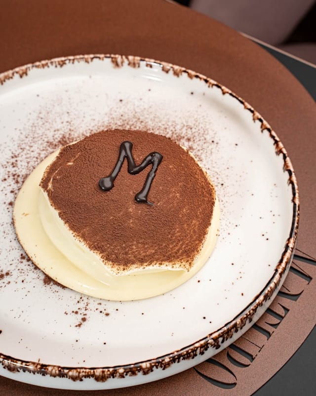 - *Baccalà mantecato, crema alla nerano, guanciale al miele, olive disidratate / tartare di fassona, olio al tartufo, tuorlo fritto. Pomodoro giallo confit
