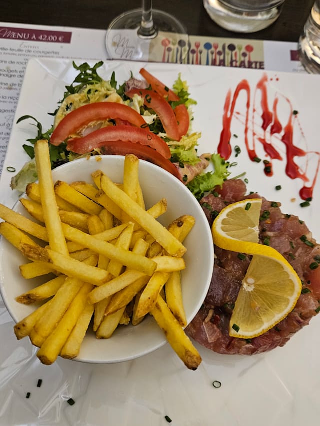 10/10We were very happy with everything the service, the ambiance with the spectacular sea view and the food is really what it’s all about ! We chose the menu at 39 euros and every morsel was delicious! Honest food with local flavours! Each dish was a success and the patron offered us the coffees! Would love to come back! Merci beaucoup!!