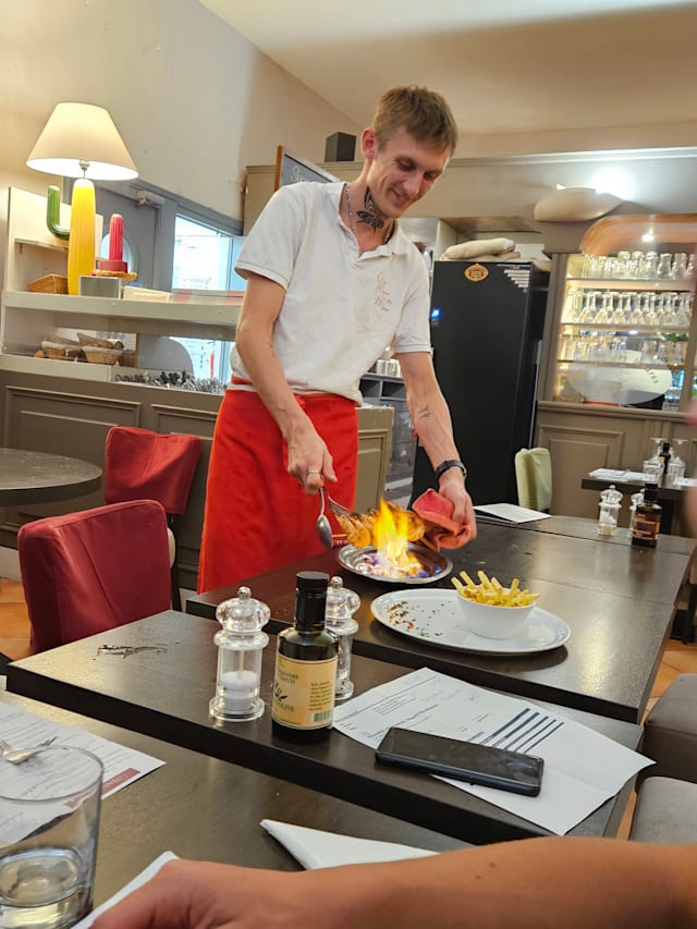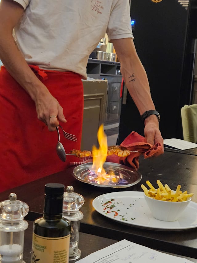 10/10One of the best meals ever. Whole fish and prawns flambé were amazing. Breathtaking view of the Mediterranean and the staff are so nice and welcoming. Tres bon!!