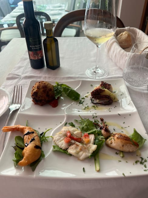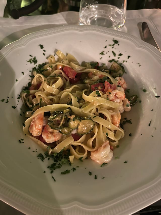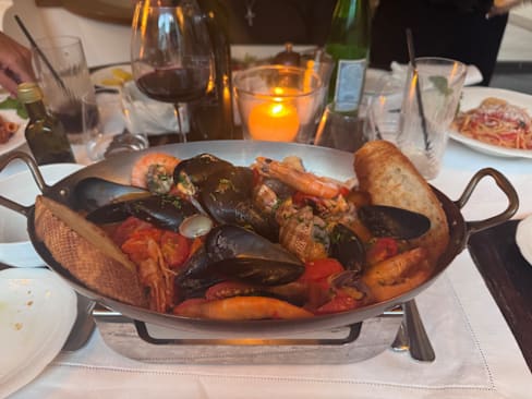 3.5/10Poor service- no one came to ask how our dinner was thorough out the courses! We even had to get up and get someone for Parmigiano cheese ?? Wine was overpriced but great selection. Desert was so so however the local fresh fish was excellent. The pastas were so so. Be aware of the past reviews??
