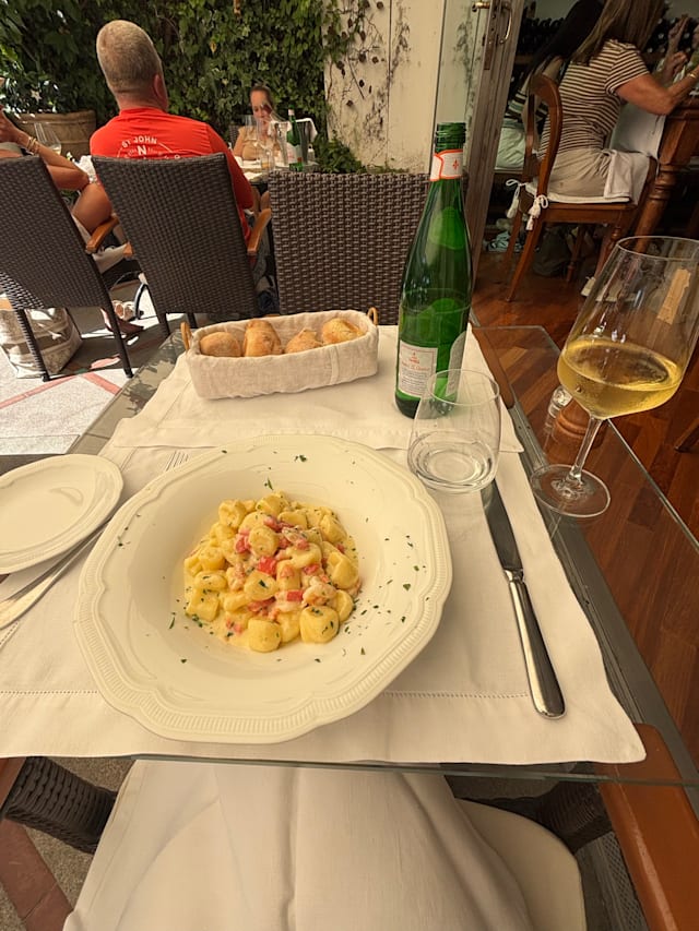 6.5/10This place was okay. Was not impressed with the pasta dishes at all. The bread was good. Service was okay. Did not appreciate them saying “ service is not included in the bill “ when they brought us the bill. I wouldn’t tell anyone “ omg you HAVE to go here “ especially when there are so many restaurants in Positano that have a few and this has none.