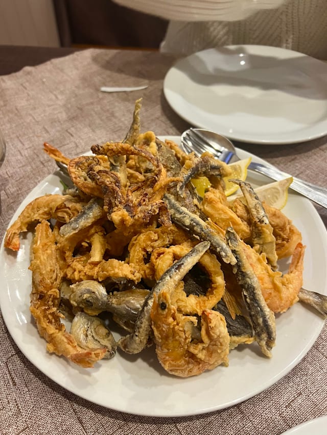 10/10This is a family run restaurant which is mainly a pizzeria, the front of the restaurant acts as a takeaway service however just to the rear there is a small restaurant, there is also an outdoor eating area. The English speaking staff were extremely attentive and suggestions of food were welcomed. We had the most delicious deep fried Zucchini flowers filled with ricotta cheese and ham and also tasty tomato bruschetta. For mains we had fresh tuna steak with salad and homemade crisps (we forgot that Italians call chips crisps, and fries are British chips). The tuna was cooked to perfection (slightly pink inside). We ended our meal with homemade tiramisu which was outstanding. All this washed down with local wines and family made limoncello. The price was much better than expected and worth every penny. We love this place and frequently eat here when visiting Meta either alone or with family and friends. If you want a fantastic authentic Italian meal in a relaxed and casual restaurant make sure you visit Mazz & Panell. The restaurant was super clean and all the staff wore masks!