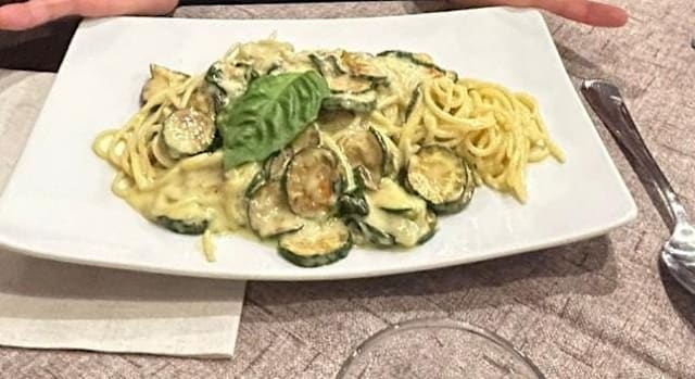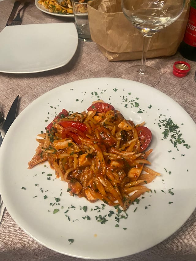 8/10We ate bruscetta with tomato and zucchini flower as starter, which was really tasty. Our main dish was pasta with tonno and the other dish (we don't know the name, something with pasta and patato) which was also really good. We totally recommend the restaurant!