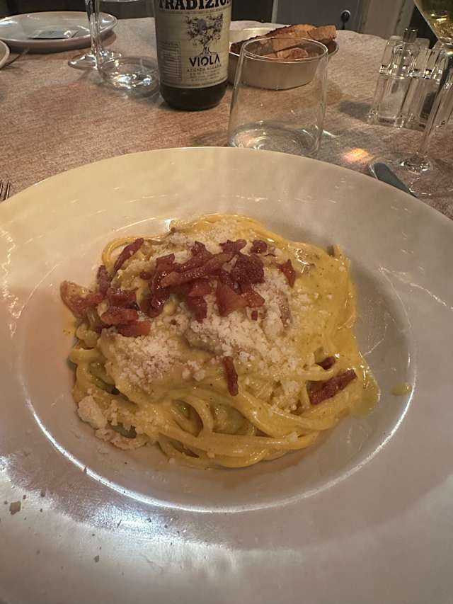 10/10We had the spaghetti Cabonara and rigatoni with pork. They were both so delicious! The cabonara was the best I’ve tried in Italy so far