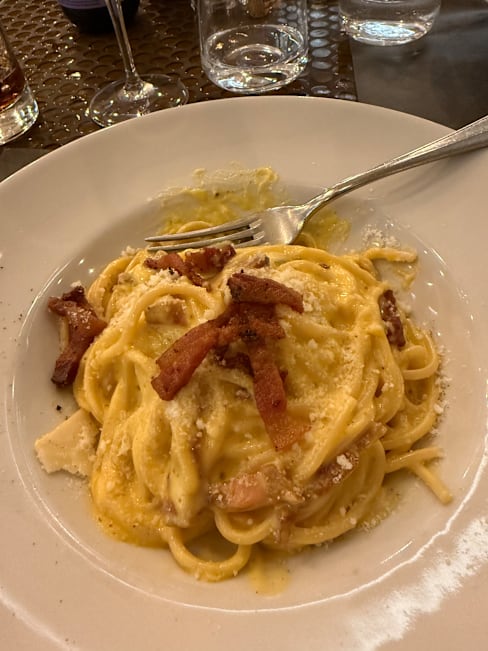 10/10This was our first dinner in Rome and it was amazing! The restaurant felt cozy and they were extremely friendly to us. They spoke multiple different languages including Spanish. All of their suggestions were fantastic. Definitely get the carbonara, cheesecake and tiramisu!! It will be hard to top this dinner and the ambiance!