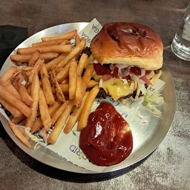 - Carne 180 gramos, queso cheddar, lechuga, cebolla, pepinillos y salsa thousand island.