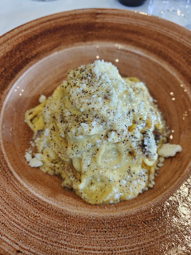 5.5/10Atmosphere could be nice if not for the annoying taranta music, which didn’t fit with the place. The waitress was kind, but kept forgetting our requests. Aptizers took 1 hour to arrive. They were good. Cheese flan very tasteful. Main dishes nothing special. Tournedor should be a thick filetto piece, but instead was cut in 2 thin slices of overcooked meat, despite my request of medium cottura. The worse part was to deal with the lady at the cassa ( to pay). First check didn’t include The Fork discount. Second check I wanted to pay with The Fork Pay, but I never received the access in the app. I asked her if maybe she should do something in the system and she reply that no. Also said that if I was there I should pay directly as for them was better.