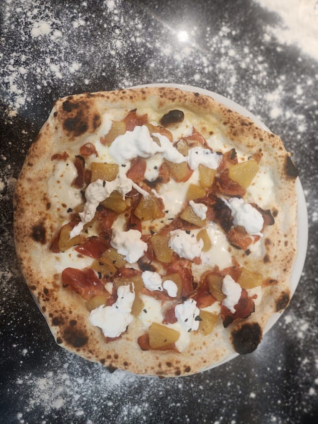 Salsa di tartufo e funghi mix, patate, salsiccia di maiale e stracciatella