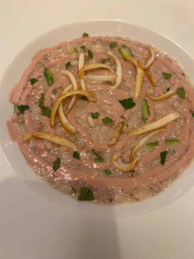 Tzatziki, caviale al cocco, chips di soia e gelato al lampone