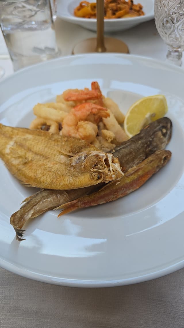 Tonno, calamaro, salsiccia di pesce, rombo, gamberi, coda di rospo