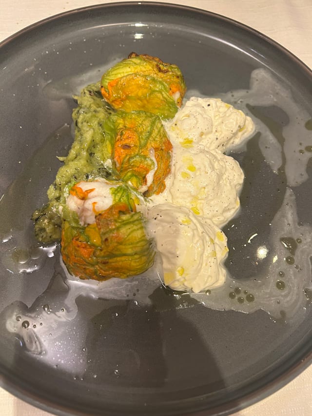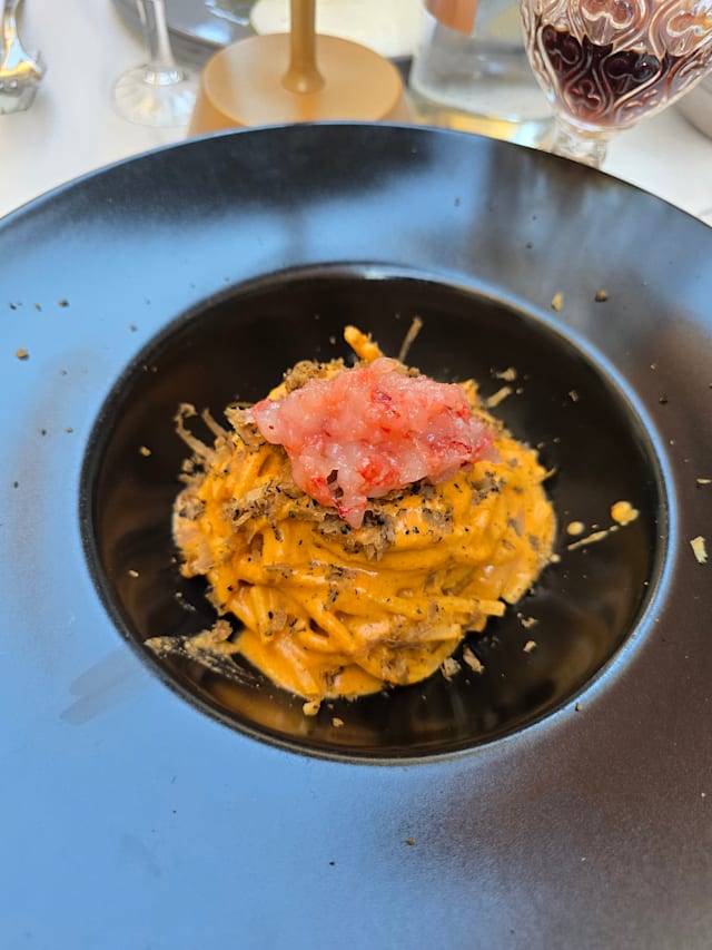 burro di capesante,tartare di gambero rosso, tartufo, jus di gambero e burrata