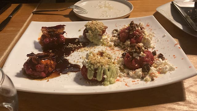 8/10Food was excellent. Very fresh ingredients, natural flavors, and beautifully presented. Tartare was delish as was the salami and cheese tray we ordered. The place was a bit quiet bu it was a Monday night.