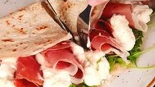 Crudo di parma, testa cotta, salame piccante, porchetta romagnola, mortadella romagnola, squacquerone, mix di formaggi, olive e pomodori secchi servito con miele e spicchi di piadina