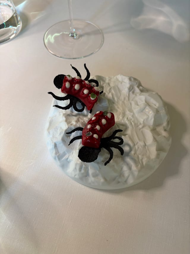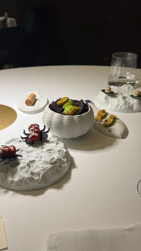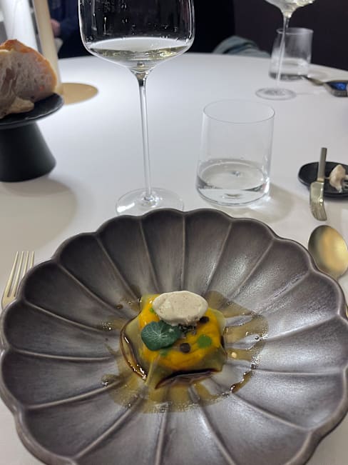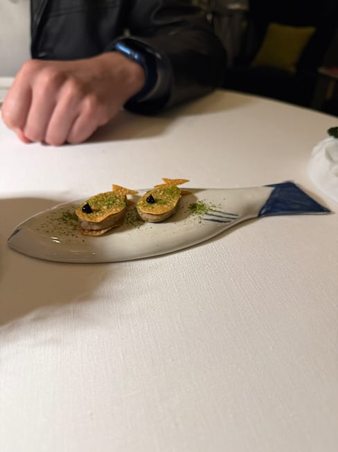 9.5/10Creative cooking and presentation. Sardines butter was my favorite with and a good choice of bread. I did three courses and a 2016 bottle of cataratto grape wine from Sicily, which I would recommend others. Pasta in fine dining is a difficult feature. It is simply not easy to compete with Italian family kitchens in Genua. The pasta did not really excite me here. The seabass filets however as the main course were very good. All amuses and gifts before the starter and after a selection of cheese were even amazing. The restaurant sits in an Apple computer private museum. That feature for me was a bit far fetched, but probably helps pay the rent. The sardines butter was formed as the Apple logo - that was ok.