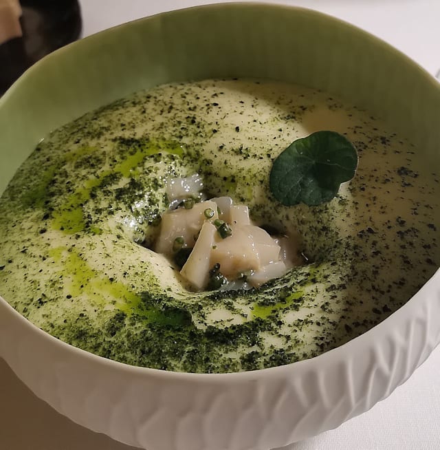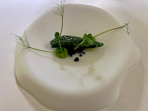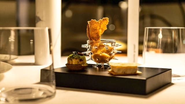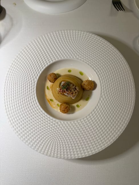 6/10The experience at this restaurant was, overall, underwhelming — especially given the high expectations and premium price point. The concept is introduced as a tribute to Steve Jobs, briefly mentioned upon arrival, but never revisited throughout the evening. It left us wondering how the theme connected to the overall dining experience. The wine list is extensive — almost overwhelming. We received a massive catalogue, but guidance was minimal when we asked for help. We expected more personalized suggestions. We went with the tasting menu, which looked promising. While the plating was elegant, the flavors didn’t consistently deliver. The courses lacked depth and didn’t quite match our palate. That said, the staff were polite and attentive, and the setting was pleasant. It wasn’t a bad evening, but it didn’t meet the standard we had anticipated — especially given the price and the intriguing concept