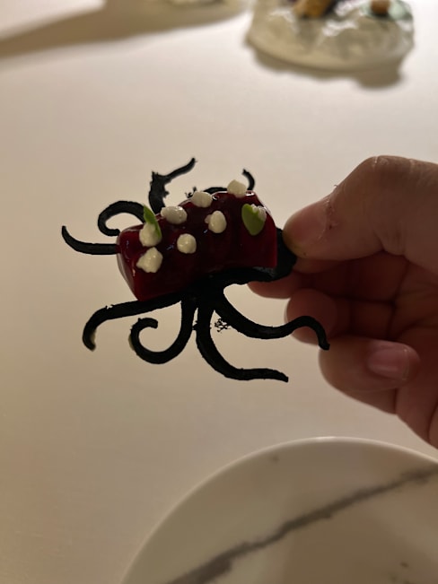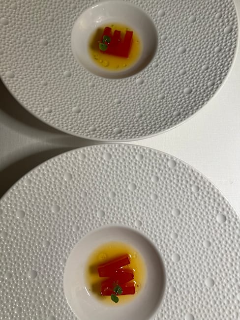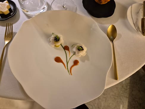 6/10The experience at this restaurant was, overall, underwhelming — especially given the high expectations and premium price point. The concept is introduced as a tribute to Steve Jobs, briefly mentioned upon arrival, but never revisited throughout the evening. It left us wondering how the theme connected to the overall dining experience. The wine list is extensive — almost overwhelming. We received a massive catalogue, but guidance was minimal when we asked for help. We expected more personalized suggestions. We went with the tasting menu, which looked promising. While the plating was elegant, the flavors didn’t consistently deliver. The courses lacked depth and didn’t quite match our palate. That said, the staff were polite and attentive, and the setting was pleasant. It wasn’t a bad evening, but it didn’t meet the standard we had anticipated — especially given the price and the intriguing concept