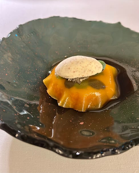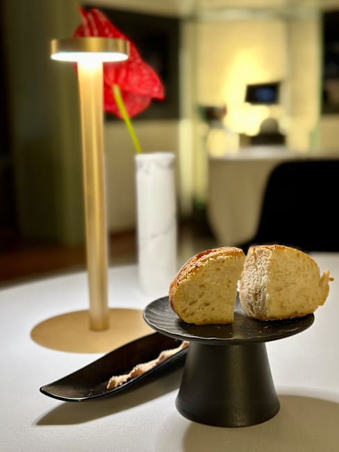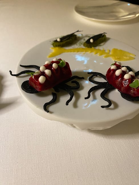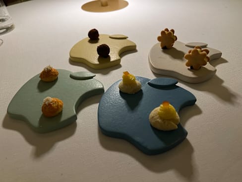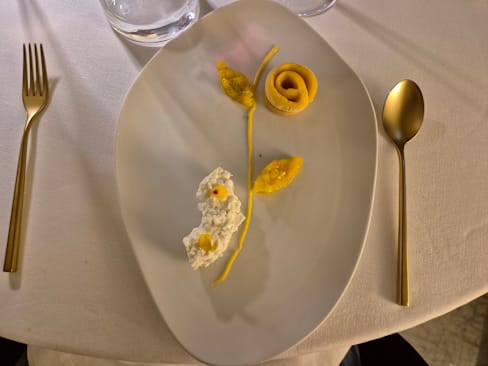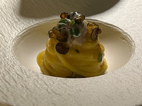 9.5/10Creative cooking and presentation. Sardines butter was my favorite with and a good choice of bread. I did three courses and a 2016 bottle of cataratto grape wine from Sicily, which I would recommend others. Pasta in fine dining is a difficult feature. It is simply not easy to compete with Italian family kitchens in Genua. The pasta did not really excite me here. The seabass filets however as the main course were very good. All amuses and gifts before the starter and after a selection of cheese were even amazing. The restaurant sits in an Apple computer private museum. That feature for me was a bit far fetched, but probably helps pay the rent. The sardines butter was formed as the Apple logo - that was ok.
