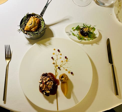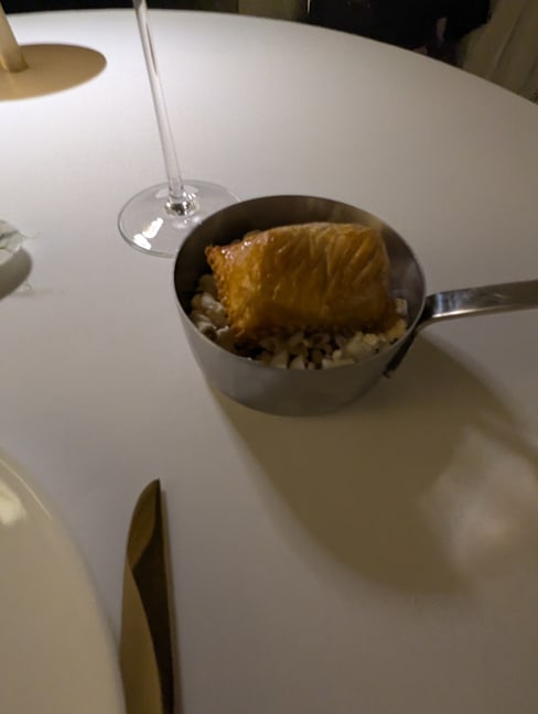 8/10The dish design, plating, and choice of tableware were all very thoughtful, but the taste of the dishes themselves was somewhat disappointing. The seafood dishes, especially those containing oysters, had a noticeable fishy smell, even in the pasta, and it was hard to mask it even with wine. The pigeon was a good main course; the doneness and sauce were excellent, but unfortunately, the recommended BDM didn’t open up quickly enough. Overall, the value for money was not high.