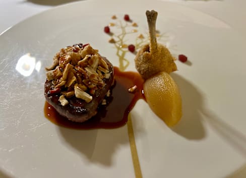 8/10Ambiance, service, presentation of the dishes all good. What came out of the kitchen not up to par to a Michelin star. Vegetarian menu. First course bread? Second was a Caponata spread, this and the following dishes all bland except for the main course. Hughe wine list, good sommelier.