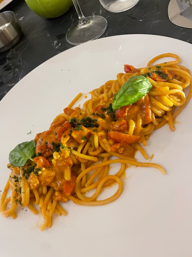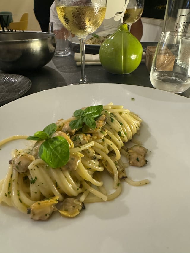 9.5/10The food, service, and ambiance were excellent, until the very loud DJ'ed kids party (?) started next door. I don't know if that's a one-time or an every day/weekend thing, but it wasn't too bad, just a bit annoying. I would highly recommend the tuna tartare with guacamole. We wished we had ordered two instead of sharing. My wife had the fish of the day and I had a giant bowl of mussels in a garlic broth. The tiramisu was good and the espresso was one of the best I've had so far.