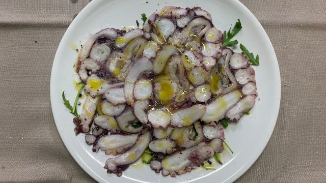 - Capo Vaticano: Polpo scottato, cicoria piccante, ricotta al limone e paté di olive nere
