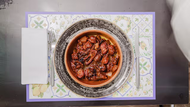 - Tentacoli di polpo* cotte con pomodoro pizzutello e patate nella tipica pignata di terracotta .
