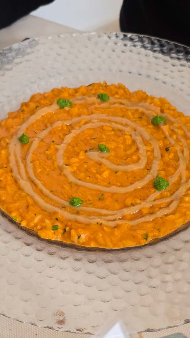 - Riso, panna, pomodoro, polpa di crostacei, aglio, prezzemolo, olio evo