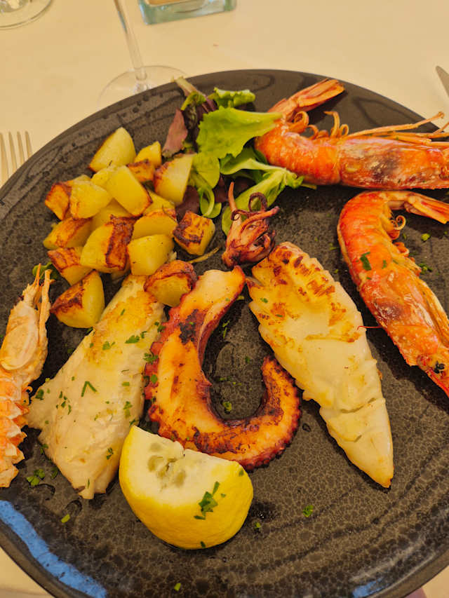 - Gamberoni argentini, scampi, calamaro, filetto di pesce, olio evo, sale, finocchio selvatico