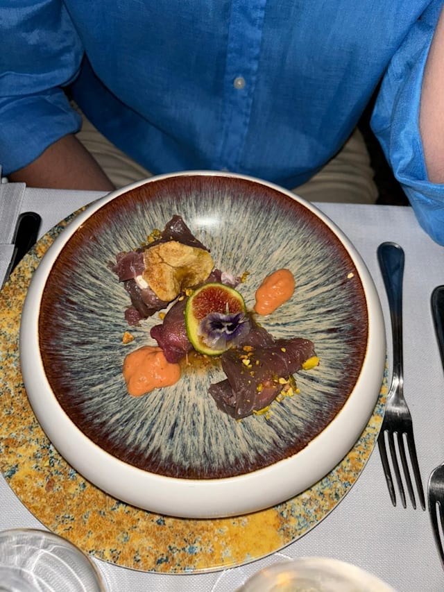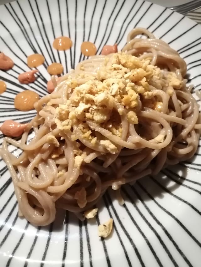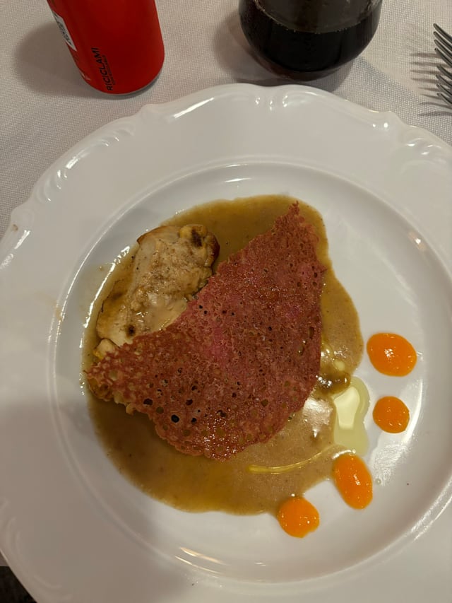 Plan di zucca gialla con prosciutto patanegra affumicato croccante, fondente di fontina