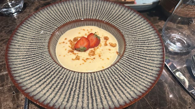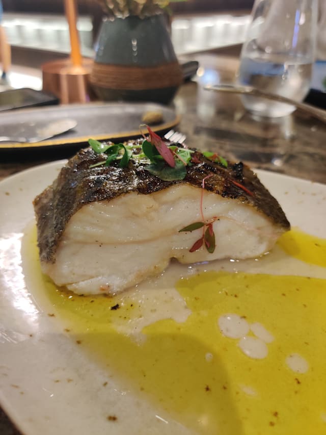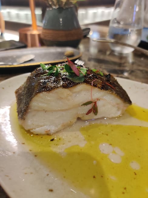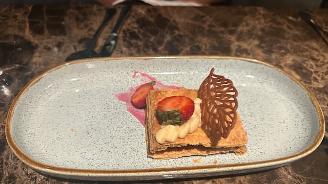 7.5/10Food is good albeit not exciting and the desserts are just okay. The menu for food is relatively good - 3 or 4 options in each category. The sparkling wine options are wide - 1 local sparkling option at around €40 and then 3 or 4 high end champagnes between €200 and €600. The restaurant is clearly where the hotel serves breakfast as the buffet stations are in place during evening dining which reduces the ambience. It feels very much like a hotel lobby rather than a space specifically for dining. The current offer on The Fork resulted in c.€80 being discounted from our bill which was a great surprise.