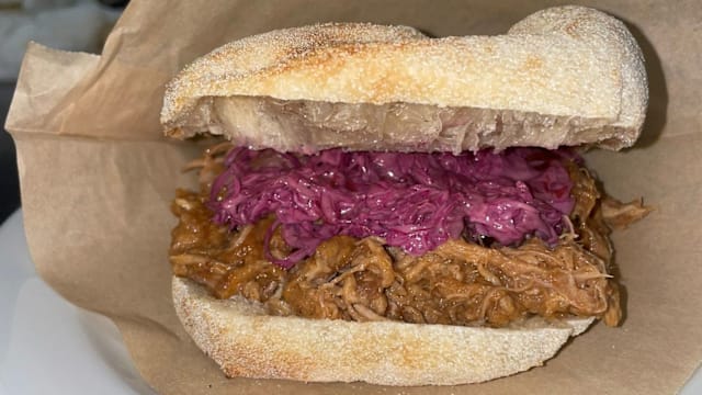 Stracciatella, mortadella, pesto di pistacchio, tartufo grattugiato