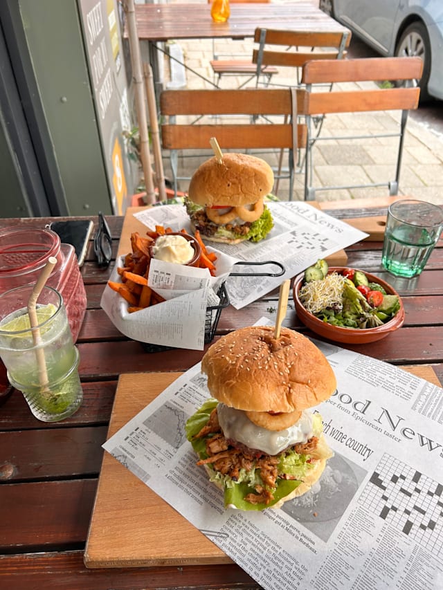 8/10Good burger patty. Real meat being used. Nice bread rolls. Generous portions. The vegetable and greens salad was interesting and different. Chips were lekker. Will go again.