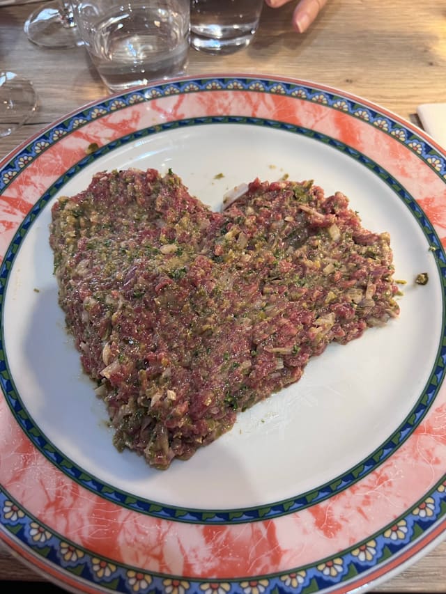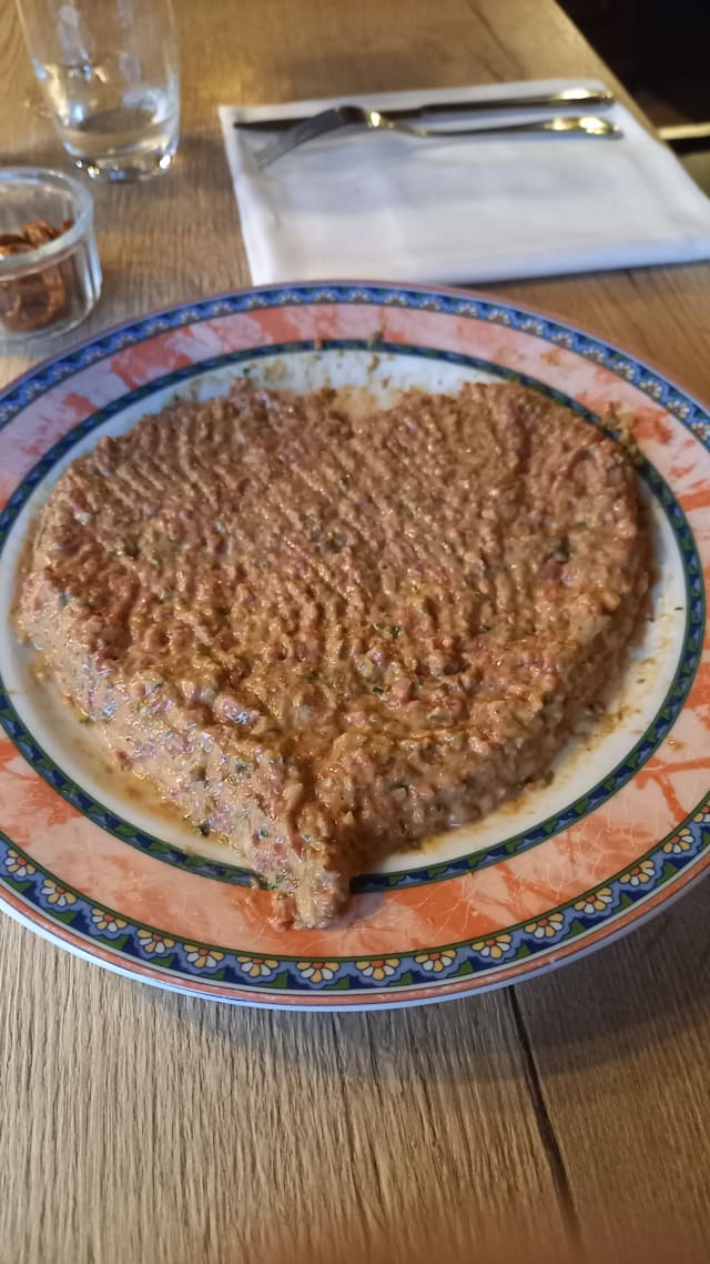 9/10Thankfully some of the staff spoke English and German, and they had an English menu. They make the beef tartar in front of you!