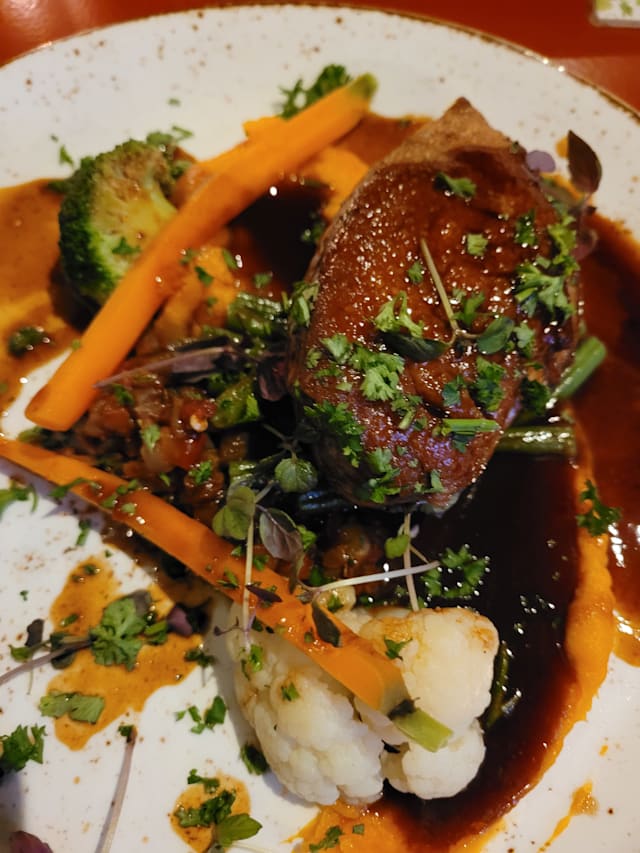This Burgundian restaurant in Arnhem serves artisan meals from the heart. The chef likes to play with the Asian kitchen to surprise his guests, and to go along with that surprise: they have some extraordinary bottles of wine or beer. A brown restaurant with walls filled with pictures and a terrace i...