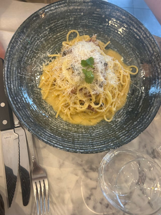 8/10The owner was very kind and did everything to make us feel special. The only thing to say was the starter. We ordered a carpaccio of beef and on the menu it says “with cherry tomatoes, and grana padano”. We ended up with pickles onions and carrots on it but no grana padano which killed our carpaccio. The pasta was good though.