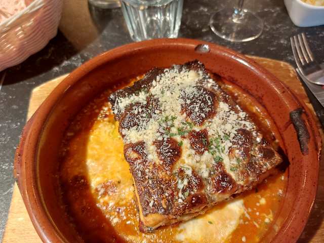 8.5/10cozy and very good food quality, the portions are just right for not feeling too full after dinner but if you are hungry consider an appetizer. Appetizers for 15 euros, main dish 20-25 euros. Wine 6 for the glass, we got a bottle for 35.