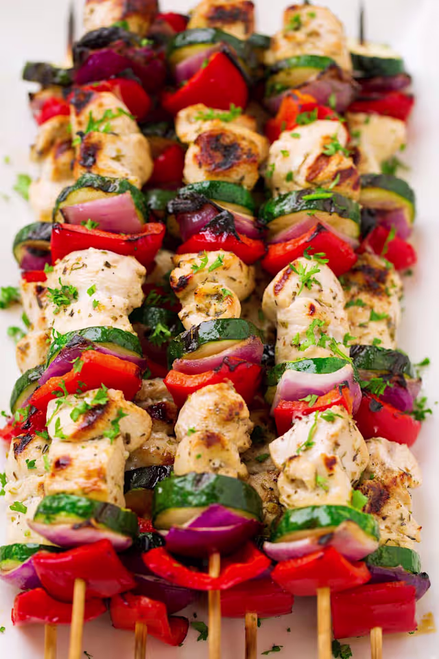 - Grilled vegetable salad with aubergines, courgettes, red and yellow peppers, onions, dry small tomatoes with extra virgin olive oil, and balsamic vinegar.