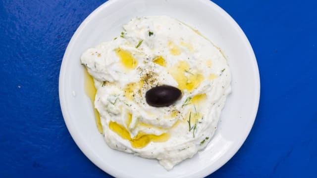 - Fine greek yogurt, cucumber, garlic and mint. Extra virgin olive oil and fresh white pepper.
