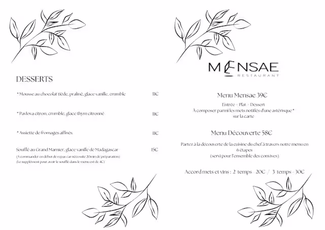 Mensae never disappoints. After three years and an eleven hour flight since our first visit we returned to Paris and chose it for our very first night. The discovery menu was one perfect dish after another and the chocolate mousse is still the best in Paris, rich and unforgettable. The atmosphere is relaxed but professional, a place where families feel welcome and couples can enjoy a date without compromise. The staff are attentive and warm, making you feel cared for from the moment you arrive. What sets Mensae apart is that it has not lost its soul trying to chase accolades. It continues to deliver excellent food and earns praise directly from its guests. A must for anyone looking for an honest and exceptional dining experience in Paris.